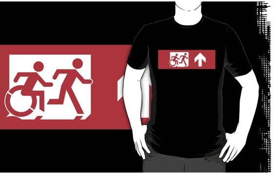Accessible Exit Sign Project Wheelchair Wheelie Running Man Symbol Means of Egress Icon Disability Emergency Evacuation Fire Safety Adult T-shirt 1