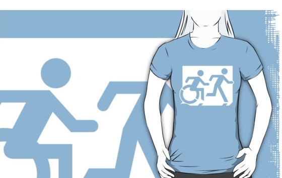 Accessible Exit Sign Project Wheelchair Wheelie Running Man Symbol Means of Egress Icon Disability Emergency Evacuation Fire Safety Adult T-shirt 101