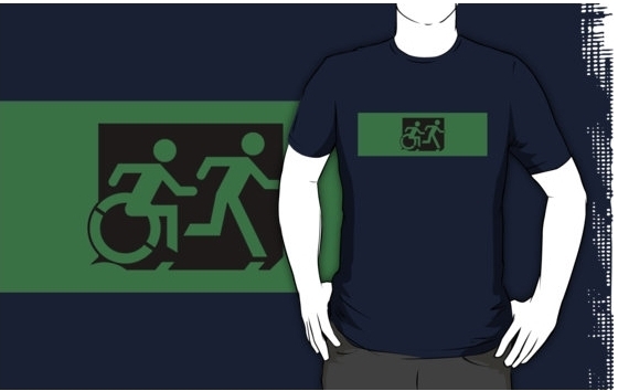 Accessible Exit Sign Project Wheelchair Wheelie Running Man Symbol Means of Egress Icon Disability Emergency Evacuation Fire Safety Adult T-shirt 105