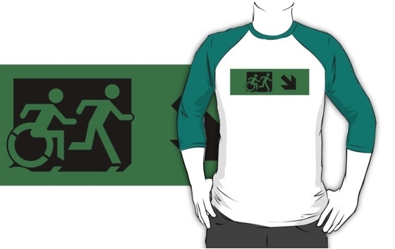 Accessible Exit Sign Project Wheelchair Wheelie Running Man Symbol Means of Egress Icon Disability Emergency Evacuation Fire Safety Adult T-shirt 109