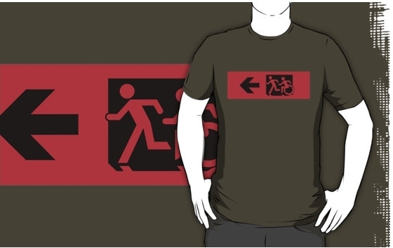 Accessible Exit Sign Project Wheelchair Wheelie Running Man Symbol Means of Egress Icon Disability Emergency Evacuation Fire Safety Adult T-shirt 11
