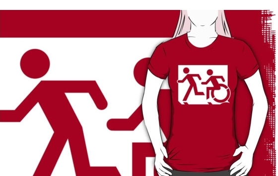 Accessible Exit Sign Project Wheelchair Wheelie Running Man Symbol Means of Egress Icon Disability Emergency Evacuation Fire Safety Adult T-shirt 114