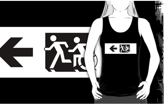 Accessible Exit Sign Project Wheelchair Wheelie Running Man Symbol Means of Egress Icon Disability Emergency Evacuation Fire Safety Adult T-shirt 12