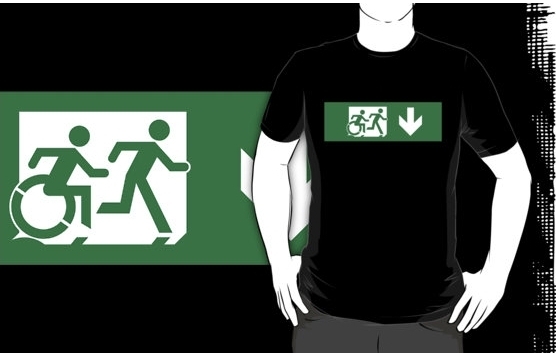 Accessible Exit Sign Project Wheelchair Wheelie Running Man Symbol Means of Egress Icon Disability Emergency Evacuation Fire Safety Adult T-shirt 125