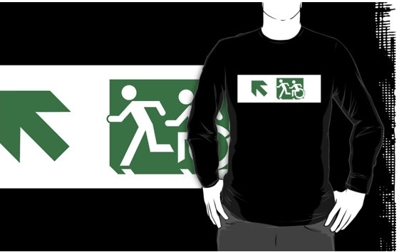 Accessible Exit Sign Project Wheelchair Wheelie Running Man Symbol Means of Egress Icon Disability Emergency Evacuation Fire Safety Adult T-shirt 137