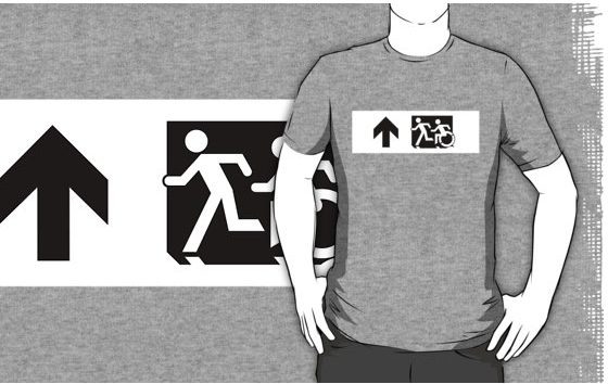 Accessible Exit Sign Project Wheelchair Wheelie Running Man Symbol Means of Egress Icon Disability Emergency Evacuation Fire Safety Adult T-shirt 14