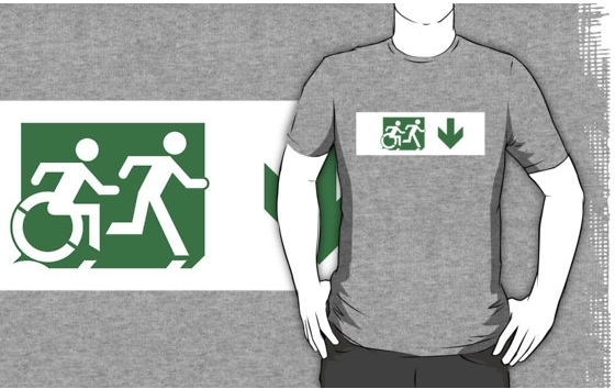 Accessible Exit Sign Project Wheelchair Wheelie Running Man Symbol Means of Egress Icon Disability Emergency Evacuation Fire Safety Adult T-shirt 145