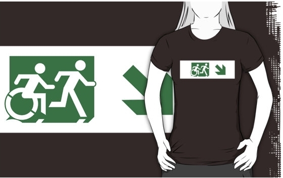 Accessible Exit Sign Project Wheelchair Wheelie Running Man Symbol Means of Egress Icon Disability Emergency Evacuation Fire Safety Adult T-shirt 147