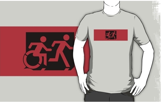 Accessible Exit Sign Project Wheelchair Wheelie Running Man Symbol Means of Egress Icon Disability Emergency Evacuation Fire Safety Adult T-shirt 15