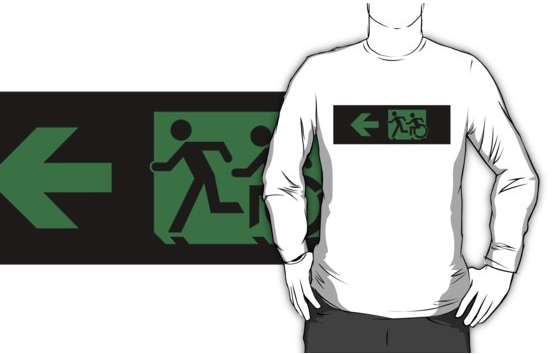 Accessible Exit Sign Project Wheelchair Wheelie Running Man Symbol Means of Egress Icon Disability Emergency Evacuation Fire Safety Adult T-shirt 152