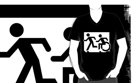Accessible Exit Sign Project Wheelchair Wheelie Running Man Symbol Means of Egress Icon Disability Emergency Evacuation Fire Safety Adult T-shirt 153