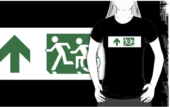 Accessible Exit Sign Project Wheelchair Wheelie Running Man Symbol Means of Egress Icon Disability Emergency Evacuation Fire Safety Adult T-shirt 158