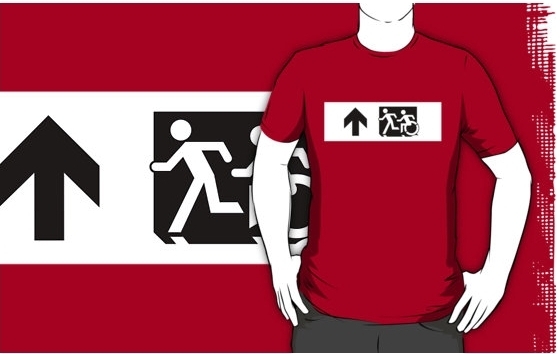 Accessible Exit Sign Project Wheelchair Wheelie Running Man Symbol Means of Egress Icon Disability Emergency Evacuation Fire Safety Adult T-shirt 16
