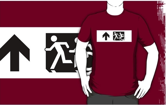Accessible Exit Sign Project Wheelchair Wheelie Running Man Symbol Means of Egress Icon Disability Emergency Evacuation Fire Safety Adult T-shirt 18