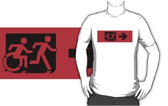 Accessible Exit Sign Project Wheelchair Wheelie Running Man Symbol Means of Egress Icon Disability Emergency Evacuation Fire Safety Adult T-shirt 23