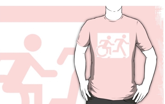 Accessible Exit Sign Project Wheelchair Wheelie Running Man Symbol Means of Egress Icon Disability Emergency Evacuation Fire Safety Adult T-shirt 28