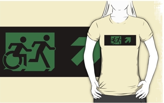 Accessible Exit Sign Project Wheelchair Wheelie Running Man Symbol Means of Egress Icon Disability Emergency Evacuation Fire Safety Adult T-shirt 34