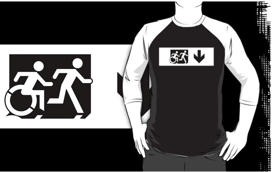 Accessible Exit Sign Project Wheelchair Wheelie Running Man Symbol Means of Egress Icon Disability Emergency Evacuation Fire Safety Adult T-shirt 37