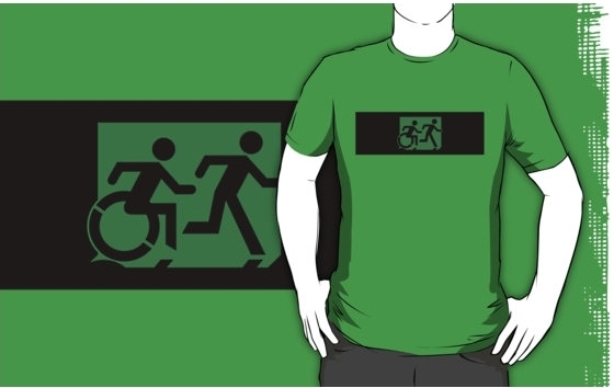 Accessible Exit Sign Project Wheelchair Wheelie Running Man Symbol Means of Egress Icon Disability Emergency Evacuation Fire Safety Adult T-shirt 40
