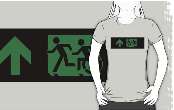Accessible Exit Sign Project Wheelchair Wheelie Running Man Symbol Means of Egress Icon Disability Emergency Evacuation Fire Safety Adult T-shirt 42