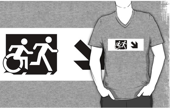 Accessible Exit Sign Project Wheelchair Wheelie Running Man Symbol Means of Egress Icon Disability Emergency Evacuation Fire Safety Adult T-shirt 43