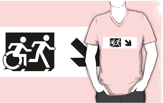 Accessible Exit Sign Project Wheelchair Wheelie Running Man Symbol Means of Egress Icon Disability Emergency Evacuation Fire Safety Adult T-shirt 45
