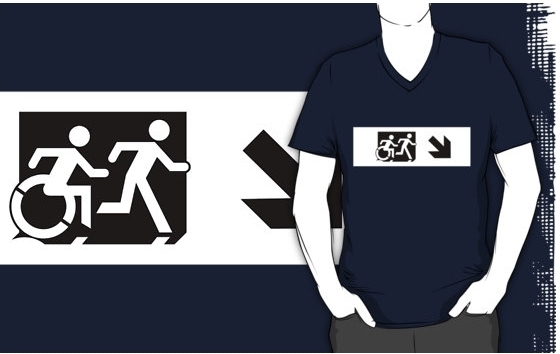 Accessible Exit Sign Project Wheelchair Wheelie Running Man Symbol Means of Egress Icon Disability Emergency Evacuation Fire Safety Adult T-shirt 47