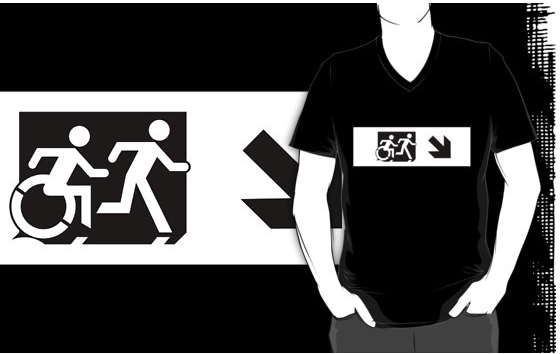 Accessible Exit Sign Project Wheelchair Wheelie Running Man Symbol Means of Egress Icon Disability Emergency Evacuation Fire Safety Adult T-shirt 52