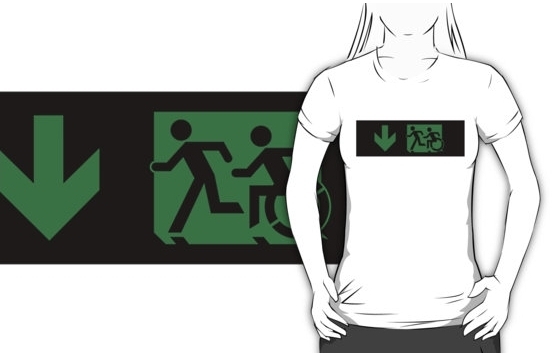 Accessible Exit Sign Project Wheelchair Wheelie Running Man Symbol Means of Egress Icon Disability Emergency Evacuation Fire Safety Adult T-shirt 53