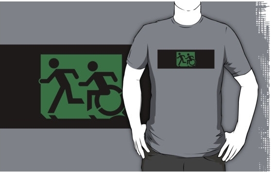 Accessible Exit Sign Project Wheelchair Wheelie Running Man Symbol Means of Egress Icon Disability Emergency Evacuation Fire Safety Adult T-shirt 55