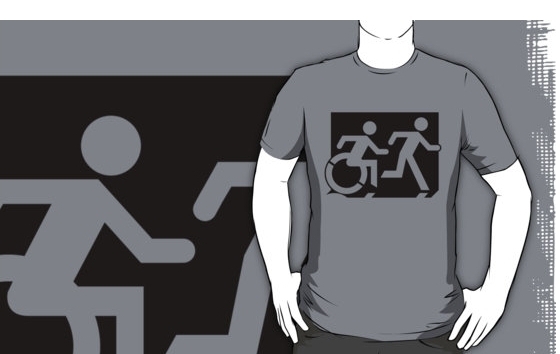 Accessible Exit Sign Project Wheelchair Wheelie Running Man Symbol Means of Egress Icon Disability Emergency Evacuation Fire Safety Adult T-shirt 59