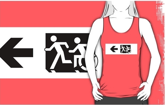 Accessible Exit Sign Project Wheelchair Wheelie Running Man Symbol Means of Egress Icon Disability Emergency Evacuation Fire Safety Adult T-shirt 6