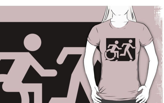 Accessible Exit Sign Project Wheelchair Wheelie Running Man Symbol Means of Egress Icon Disability Emergency Evacuation Fire Safety Adult T-shirt 61