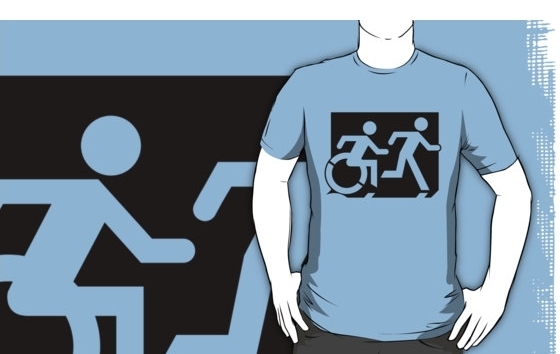 Accessible Exit Sign Project Wheelchair Wheelie Running Man Symbol Means of Egress Icon Disability Emergency Evacuation Fire Safety Adult T-shirt 65