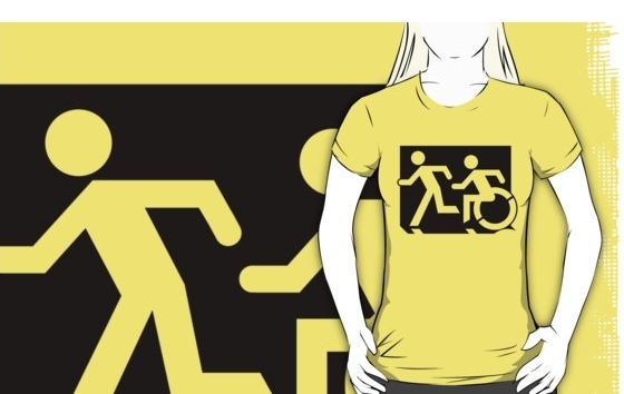 Accessible Exit Sign Project Wheelchair Wheelie Running Man Symbol Means of Egress Icon Disability Emergency Evacuation Fire Safety Adult T-shirt 69