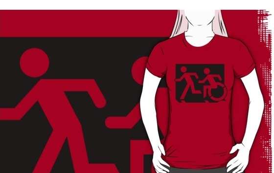 Accessible Exit Sign Project Wheelchair Wheelie Running Man Symbol Means of Egress Icon Disability Emergency Evacuation Fire Safety Adult T-shirt 71