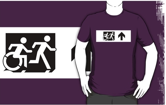 Accessible Exit Sign Project Wheelchair Wheelie Running Man Symbol Means of Egress Icon Disability Emergency Evacuation Fire Safety Adult T-shirt 79