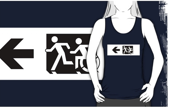 Accessible Exit Sign Project Wheelchair Wheelie Running Man Symbol Means of Egress Icon Disability Emergency Evacuation Fire Safety Adult T-shirt 8