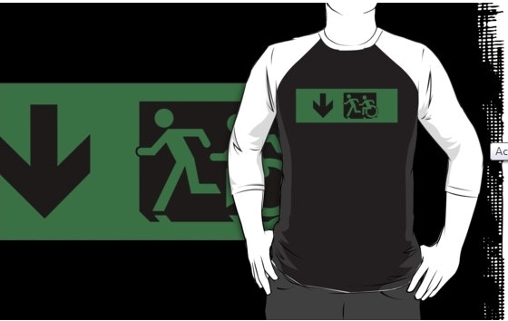 Accessible Exit Sign Project Wheelchair Wheelie Running Man Symbol Means of Egress Icon Disability Emergency Evacuation Fire Safety Adult T-shirt 86