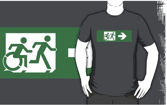 Accessible Exit Sign Project Wheelchair Wheelie Running Man Symbol Means of Egress Icon Disability Emergency Evacuation Fire Safety Adult T-shirt 87