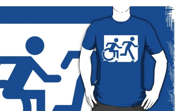 Accessible Exit Sign Project Wheelchair Wheelie Running Man Symbol Means of Egress Icon Disability Emergency Evacuation Fire Safety Adult T-shirt 89