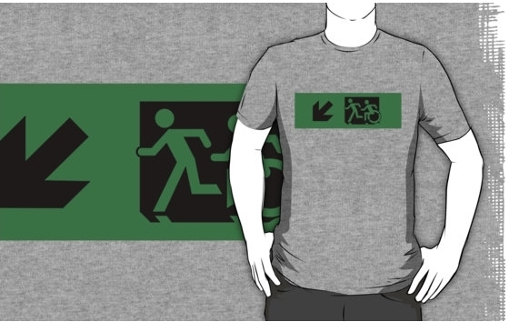 Accessible Exit Sign Project Wheelchair Wheelie Running Man Symbol Means of Egress Icon Disability Emergency Evacuation Fire Safety Adult T-shirt 91