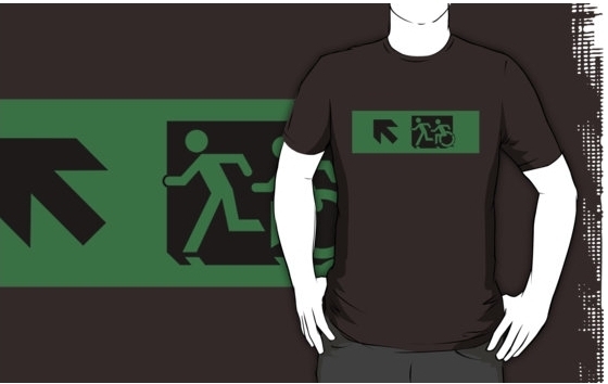 Accessible Exit Sign Project Wheelchair Wheelie Running Man Symbol Means of Egress Icon Disability Emergency Evacuation Fire Safety Adult T-shirt 93