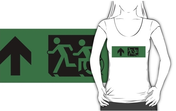 Accessible Exit Sign Project Wheelchair Wheelie Running Man Symbol Means of Egress Icon Disability Emergency Evacuation Fire Safety Adult T-shirt 97