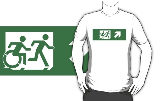 Accessible Exit Sign Project Wheelchair Wheelie Running Man Symbol Means of Egress Icon Disability Emergency Evacuation Fire Safety Adult T-shirt 99