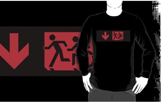 Accessible Exit Sign Project Wheelchair Wheelie Running Man Symbol Means of Egress Icon Disability Emergency Evacuation Fire Safety Adult T-shirt 172