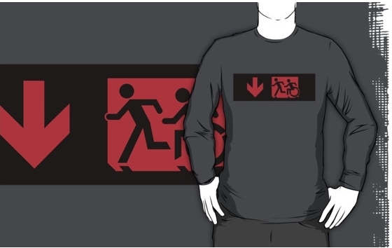 Accessible Exit Sign Project Wheelchair Wheelie Running Man Symbol Means of Egress Icon Disability Emergency Evacuation Fire Safety Adult T-shirt 173