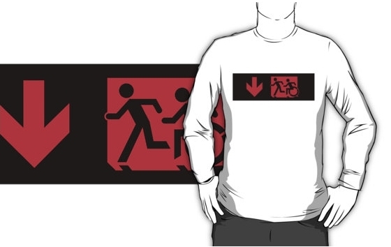 Accessible Exit Sign Project Wheelchair Wheelie Running Man Symbol Means of Egress Icon Disability Emergency Evacuation Fire Safety Adult T-shirt 174