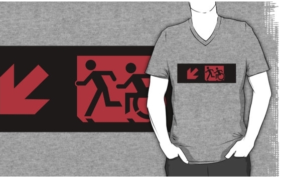 Accessible Exit Sign Project Wheelchair Wheelie Running Man Symbol Means of Egress Icon Disability Emergency Evacuation Fire Safety Adult T-shirt 176