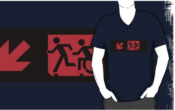 Accessible Exit Sign Project Wheelchair Wheelie Running Man Symbol Means of Egress Icon Disability Emergency Evacuation Fire Safety Adult T-shirt 179